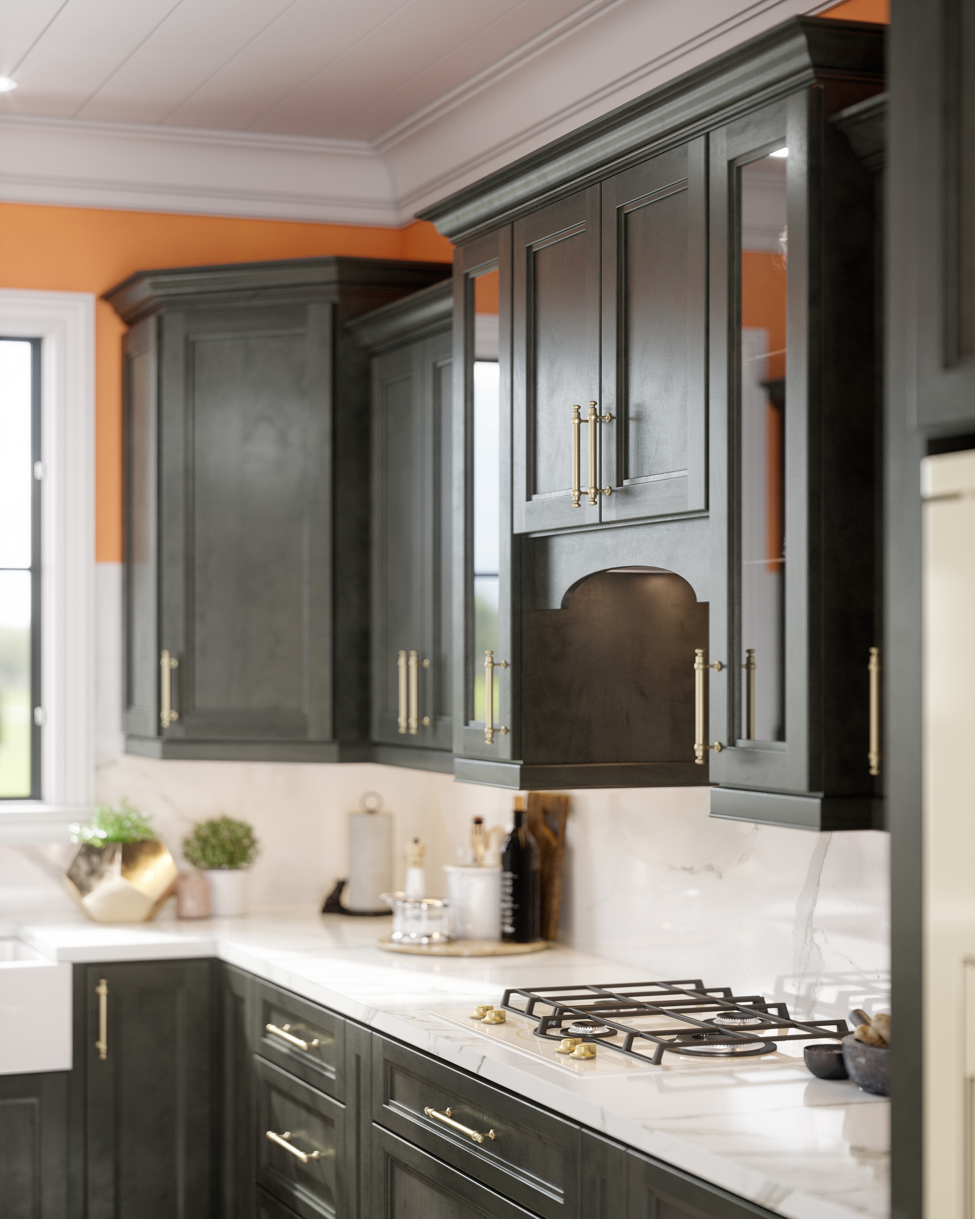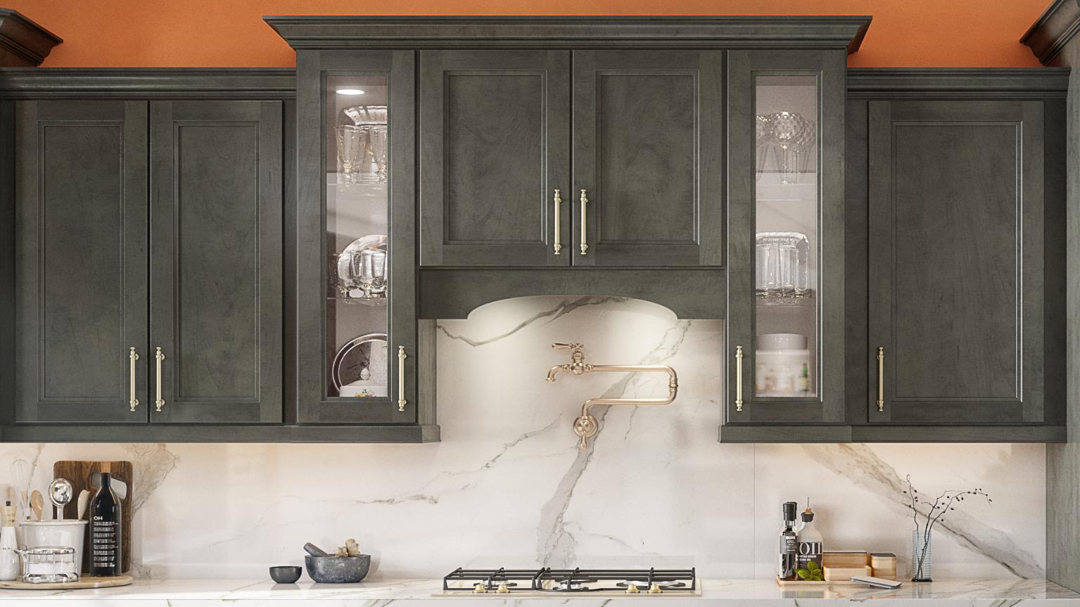 Prepare to ignite a spark of enchantment in your kitchen and bathroom projects with the alluring Smoky Gray cabinet style.